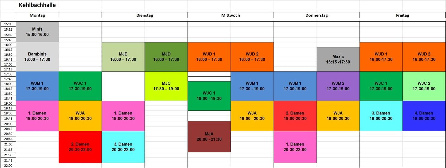 | Donnerstag | 20:30 – 22:00 | Kehlbachhalle |