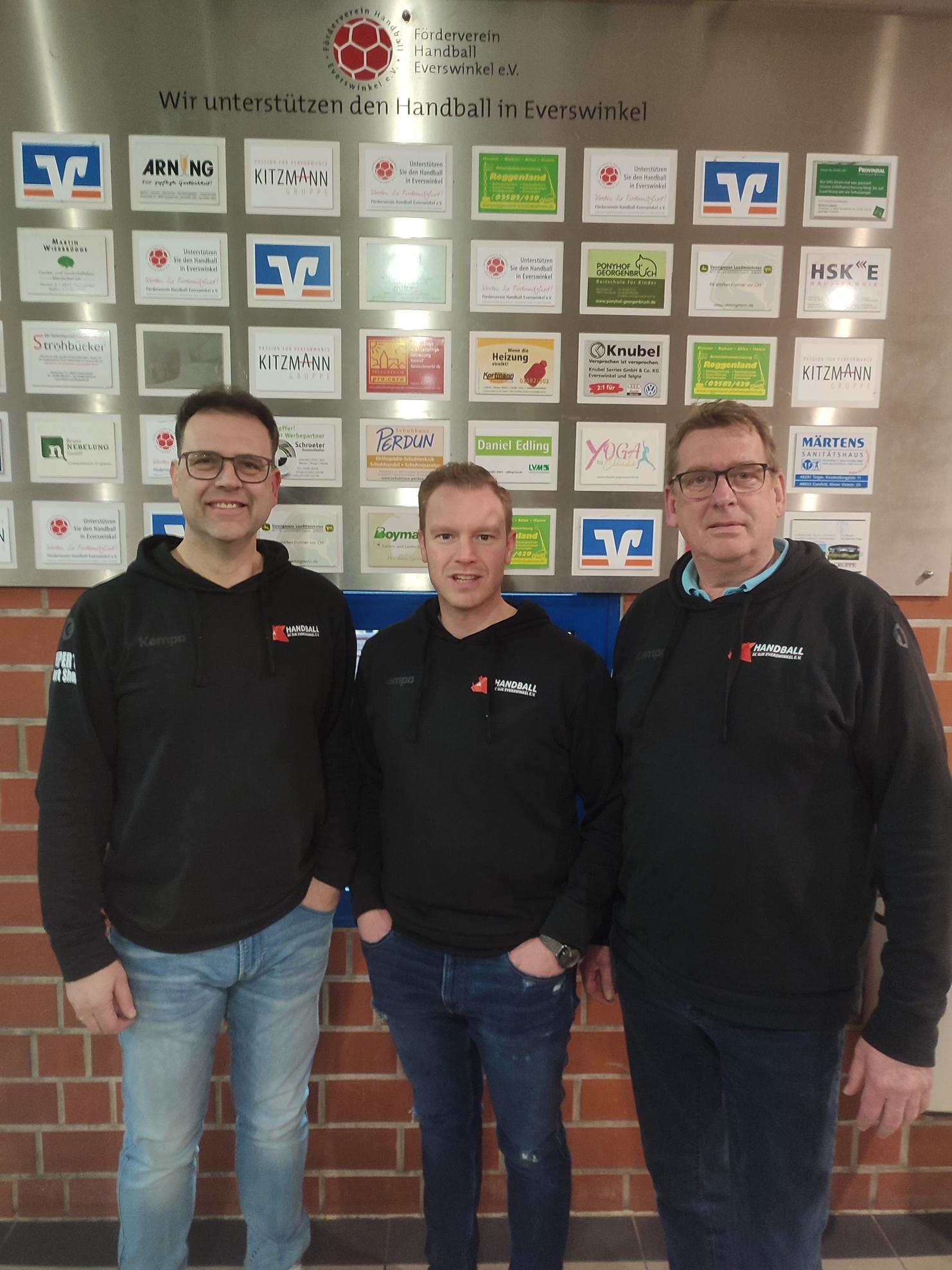 Foto: Die Führung der Handballabteilung (v.l.): Stefan König (Geschäftsführer), Raphael Wierbrügge (Abteilungsleiter) und André Henning (stellv. Abteilungsleiter).