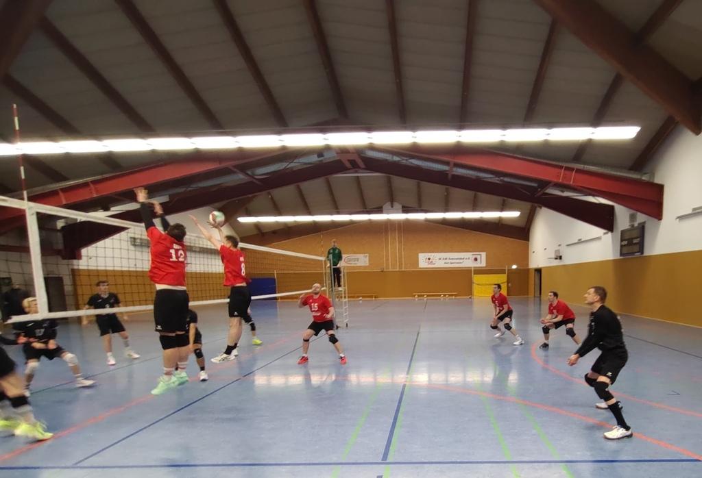 Einen wichtigen Sieg konnte die Spielgemeinschaft Everswinkel/Sendenhorst gegen die DJK Delbrück III einfahren. Mit 3:1 (26:24; 25:22; 17:25; 24:26) setzte sich das Team um Mannschaftskapitän Jérôme Jolovic gegen den direkten Tabellennachbarn hart umkämpft - aber verdient - durch. Der erste Satz war stets knapp. Die Münsterländer waren zwar stets in Führung, konnten sich aber nicht entscheidende absetzen. Entsprechend eng ging dieser Satz zu Ende. Im zweiten Spielabschnitt führte die SG Everswinkel/Sendenhorst schnell deutlich, ließ sich aber wieder einfangen und konnte den Vorsprung noch ins Ziel retten. Der dritte Satz war eine klare Angelegenheit für Delbrück. Die SGES kam kaum ins Spiel und hatte den wuchtigen Angriffen der DJK Delbrück nicht viel entgegenzusetzen. Im letzten Durchgang fingen sich die Spieler um Coach Hubi Hagen wieder und konnten durch ihrerseits unwiderstehliche Angriffe die Delbrücker im Schach halten. So bejubelte die Mannschaft am Ende einen verdienten Erfolg. Durch den dritten Sieg innerhalb der letzten vier Spiele zog die SG in der Tabelle an Delbrück vorbei und belegt zur Weihnachtspause erstmals in dieser Saison keinen Abstiegsplatz.